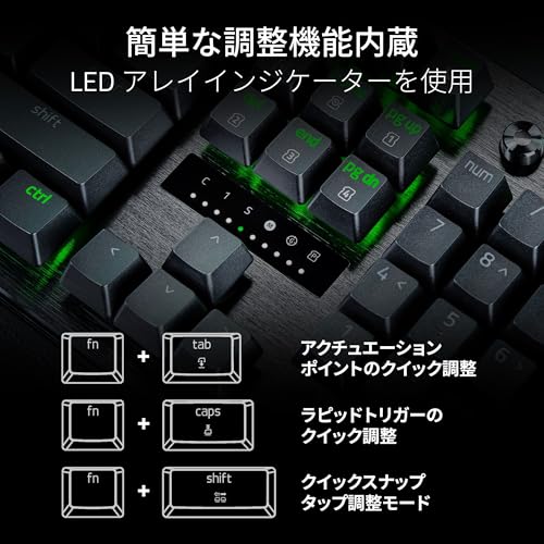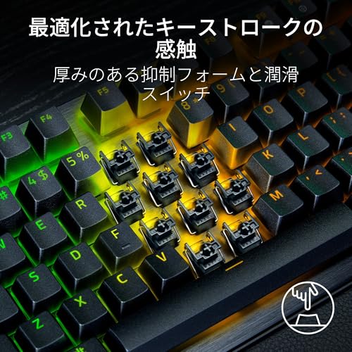 Huntsman V3 Pro 8KHzおよびHuntsman V3 Pro Tenkeyless 8KHzは、Razerがこれまで培ってきた技術を大きく進化させた、アナログオプティカルスイッチ第2世代を採用しています。0.1mmから4.0mmまでの可変アクチュエーションに対応。Rapid TriggerモードやRazer Snap Tap機能を備え、一瞬の反応が勝敗を分けるFPSなどゲームジャンルで優位性を発揮するよう設計されています。