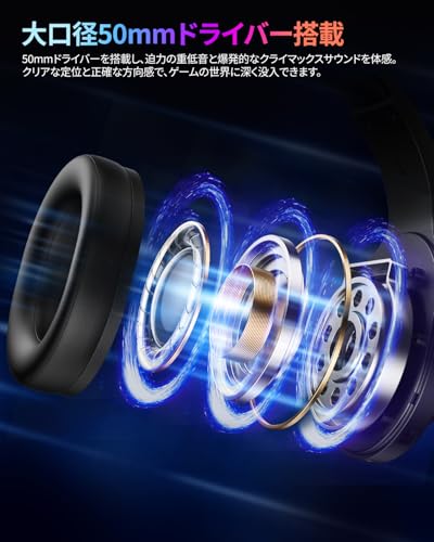 50mmドライバーを搭載し、7.1chサラウンドに対応。Bluetooth、2.4GHzワイヤレス、USB有線の3パターンの接続モードに対応し、PC(Windows/Mac)やスマートフォンはもちろん、プレイステーション5/4やNintendo Switch 2(マイクは使用不可)でも使用できます。
