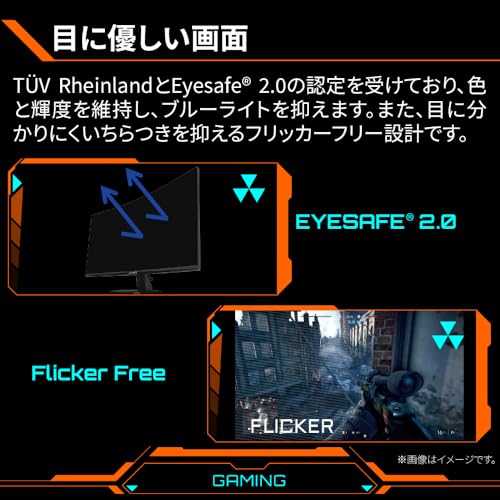 さらに、GIGABYTE独自の「ゲームアシスト機能」を搭載。クロスヘアやタイマー表示など、ゲームをサポートする多彩なツールを備えています。また、フリッカーフリーやブルーライト低減機能も備え、長時間のプレイ時でも目の疲労を軽減します。